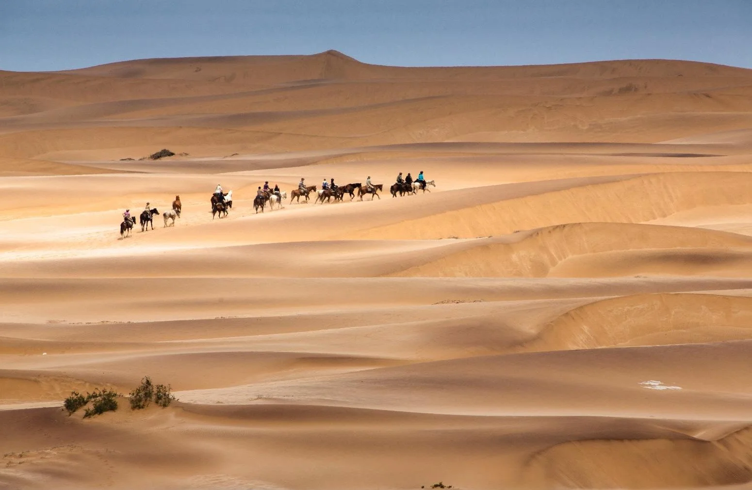 Namibia’s Namib Desert is a land of contrasts: endless dunes, rocky outcrops and vast open plains stretch as far as the eye can see. From horseback, you can experience the solitude and scale of this extraordinary environment, discovering hidden oases, dramatic canyons and wildlife uniquely adapted to the harsh desert. Each ride immerses you in a world of timeless landscapes, where every turn reveals a new view and the sense of adventure is impossible to match elsewhere.