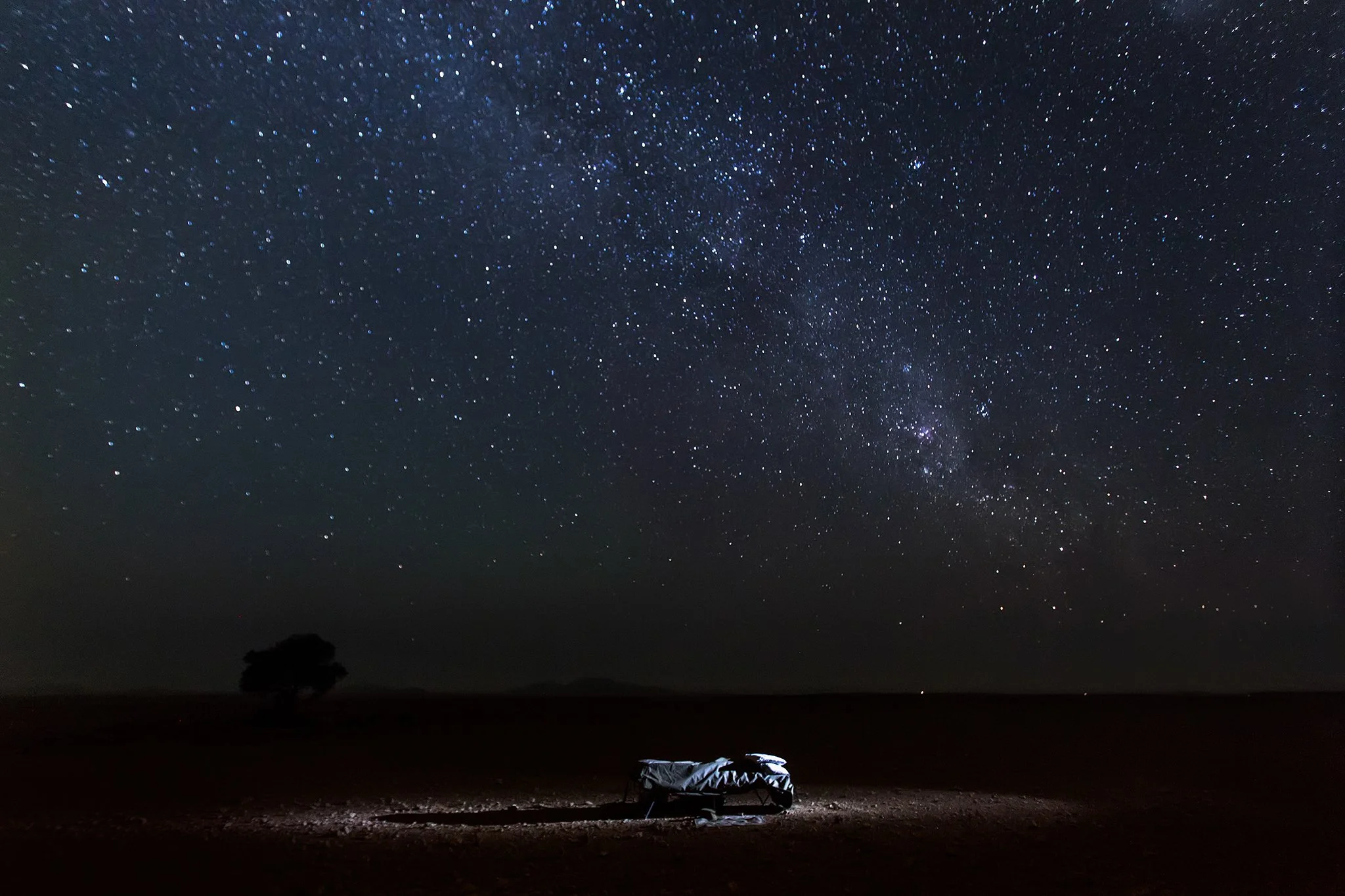 Mornings begin at sunrise with coffee and a nourishing breakfast by the fire. Your first day of riding starts in the Naukluft mountains. The pace changes with the terrain, from steady climbs and winding valleys to long stretches along dry riverbeds where faster paces are possible. Lunch stops are taken out in the open wilderness, followed by more riding in the afternoon. Daily distances range between 20 and 60 km, making this an active and rewarding ride for confident riders. Evenings are spent in remote camps, sharing stories around the fire while wildlife quietly passes by and the Milky Way lights up the night sky.