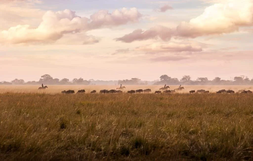 Ride through the vast plains of the Simalaha Community Conservancy: a remote, low-tourism wilderness where wildlife roams freely and horses move safely alongside herds of zebra, wildebeest and giraffe. With no large predators in the area, riding here feels relaxed and expansive, allowing you to truly enjoy the freedom of long canters guided by highly experienced horsemen who know this land intimately. The horses live naturally, roaming freely when not in work, and the entire safari is rooted in responsible, sustainable tourism.